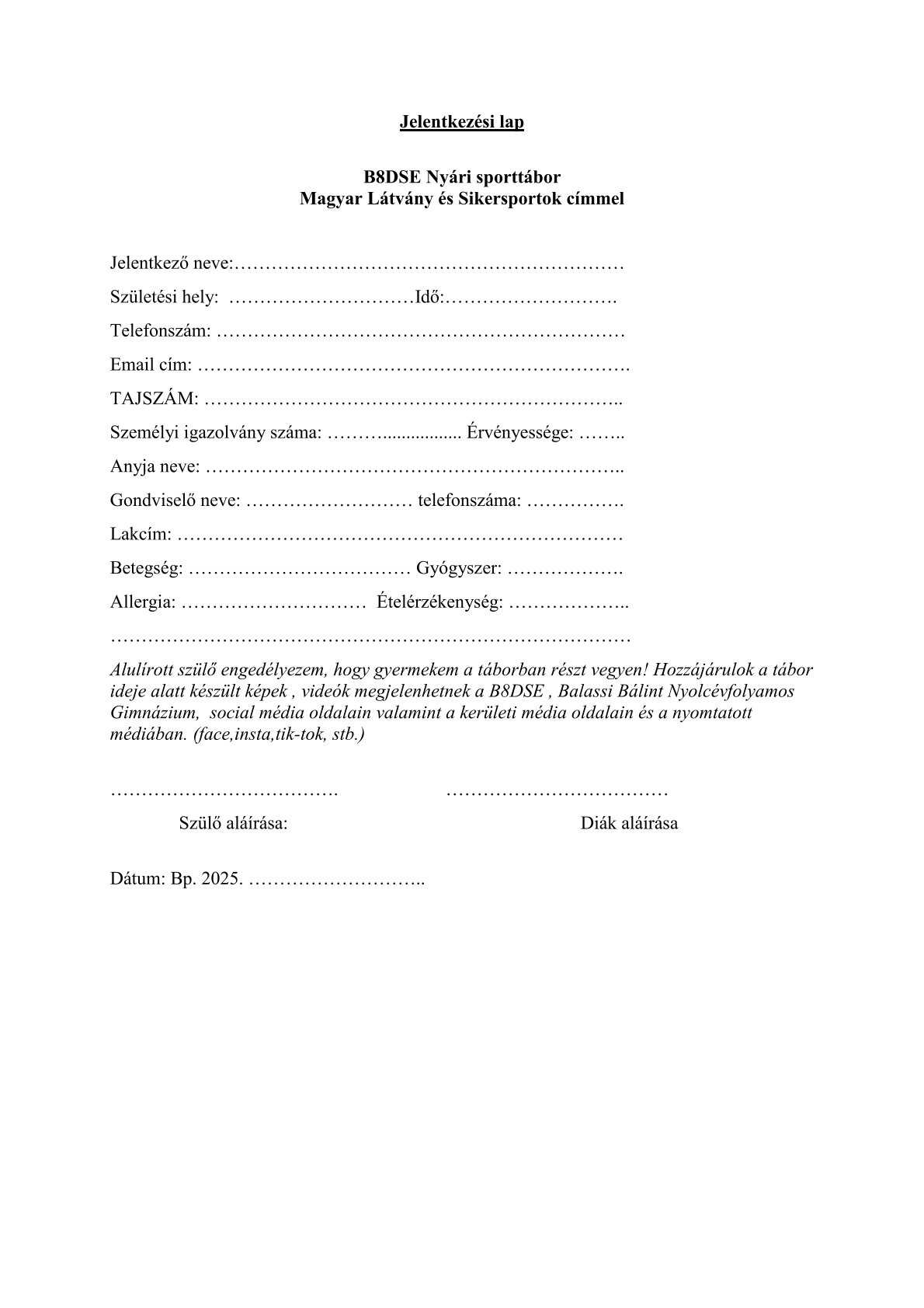 A tábort támogatta az iskolai B8DSE és a Balassi '92 Alapítvány.